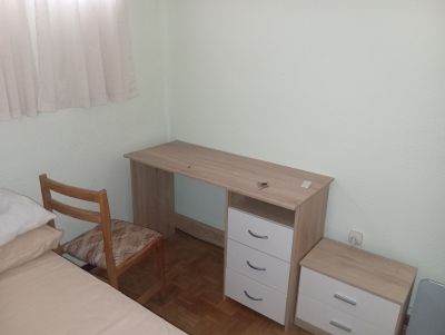 The room has plenty of light is furnished with a double bed, wardrobe, table etc. It is shared with a man from the UK and a woman from The Philippines who are both clean and tidy. The apartment is a one minute minute walk from the metro and is €450 a month with all bills included. Couples not excepted. Room available from 1st September If you're interested send me a message