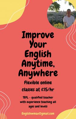 Hi! I’m Max, an English teacher from the UK with 2 years of experience helping students improve their speaking, writing, and confidence in English. My lessons are engaging, practical, and tailored to your goals, whether it’s for travel, work, or exams. My rates are £15 / 17€ per hour and lessons are held over Google Meets. If you have any questions, please don’t hesitate to email me at Englishwmax@gmail.com :)