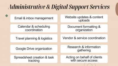 Hi everyone, I’m a remote virtual assistant with a few years of experience helping small business owners and individuals stay organized and supported behind the scenes. I help with admin tasks, website updates, travel planning, digital organization, and general support so you can focus on what matters most. I currently have availability for 1-2 new clients. Feel free to reach out if this sounds helpful I'm happy to chat!