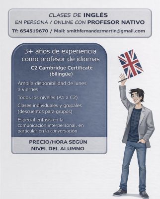 • Ubicación: Me desplazo por todo Madrid, clases en cafeterías o formato Online.