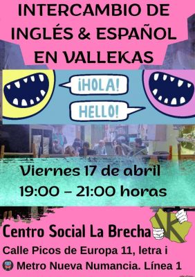 The date for the Vallekas intercambio has changed to Friday 17th of April due to Easter holidays. Sorry.
