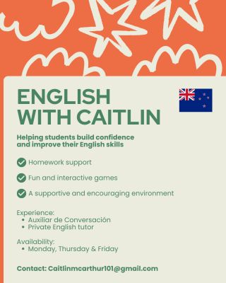 I have experience as an Auxiliar de Conversación in a High School and a private tutor for children aged 6-14 years old, helping students build confidence and improve their English skills.